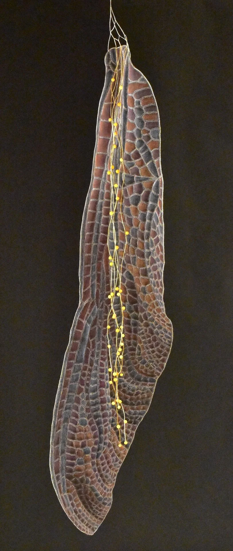 Stainless steel mesh, wire, pins, Tahitian sand, acrylic medium (2015-2025)