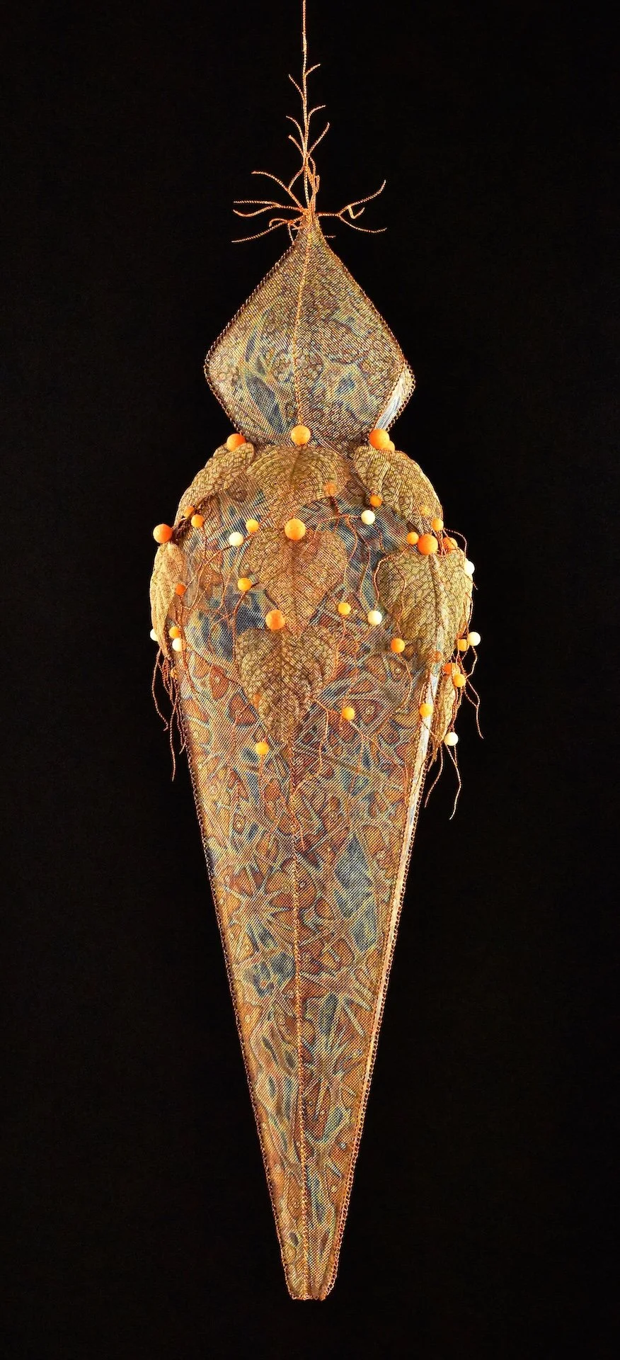 Bronze, aluminum and brass mesh, glass frit, wire (2013)